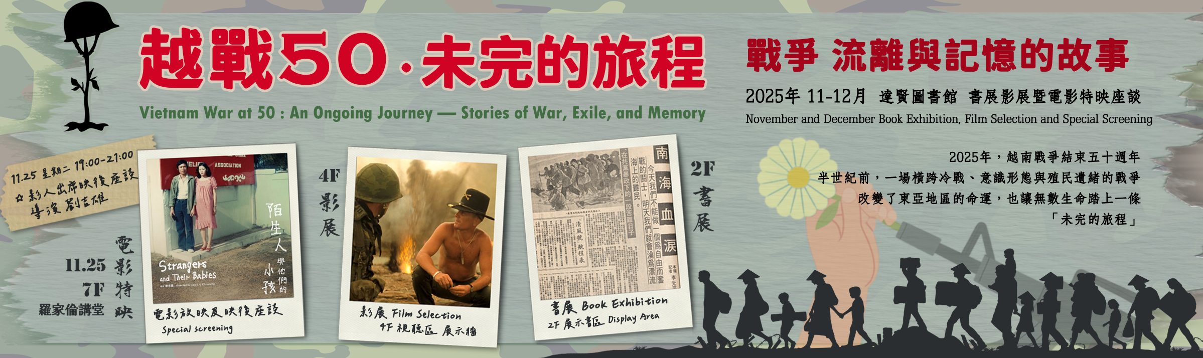《越戰50‧未完的旅程》以書籍、影像與檔案資料為媒介,回望戰爭的創傷與記憶的延續。